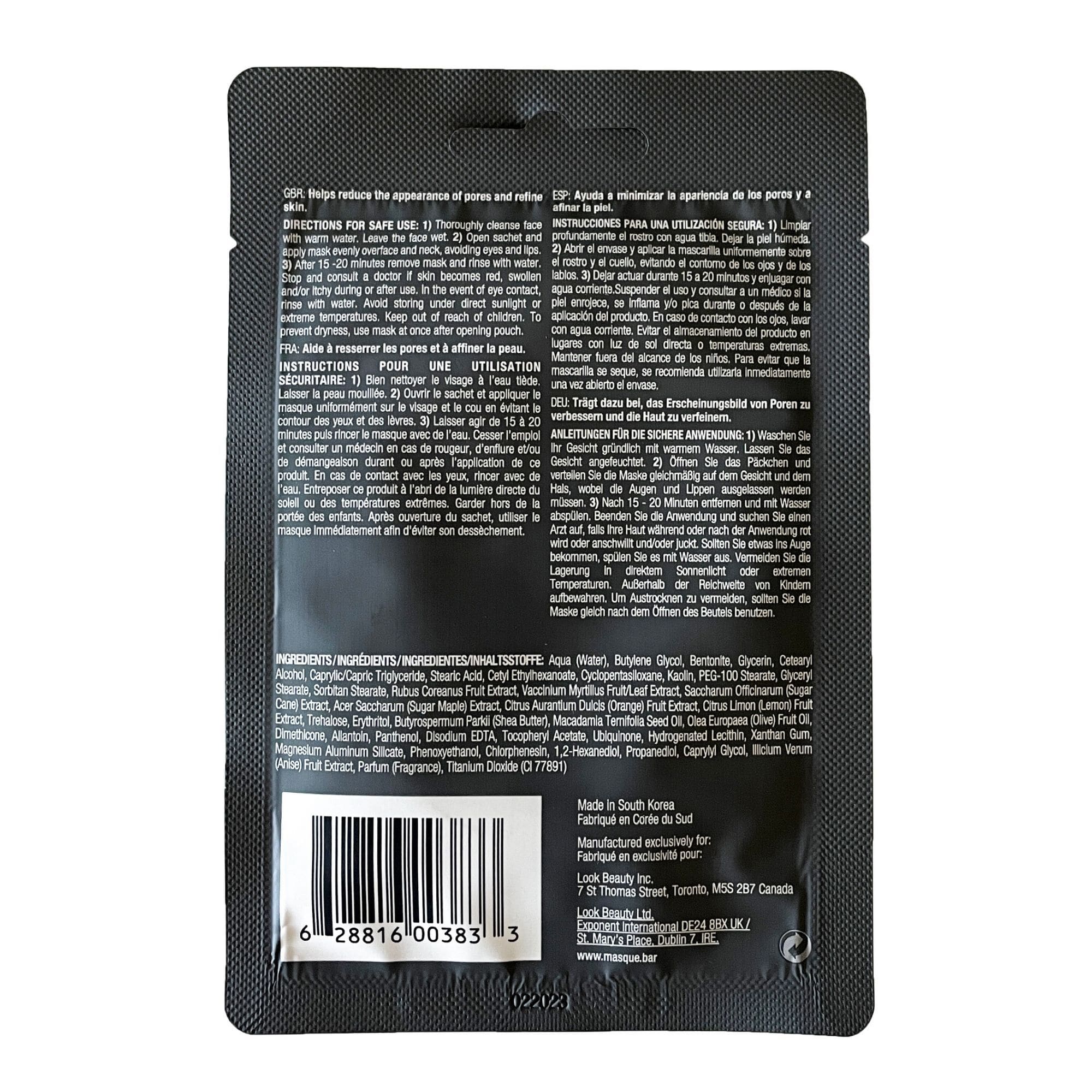 Water (Aqua), Sodium Laureth Sulfate, Glycerin, Cocamidopropyl Betaine, Acrylates/C10-30 Alkyl Acrylate Crosspolymer, Sodium Benzoate, Charcoal Powder, Zea Mays (Corn) Starch, Microcrystalline Cellulose, Sodium Hydroxide, Sucrose, CI77499, Propylene Glycol, Avena Sativa (Oat) Meal Extract, Bambusa Vulgaris Leaf/Stem Extract, Camellia Japonica Flower Extract, Butyl Avocadate, Oryza Sativa (Rice) Bran Oil, Pueraria Lobata Root Extract, Ulmus Davidiana Root Extract, Oenothera Biennis (Evening Primrose) Flower Extract, Pinus Palustris Leaf Extract, Tocopheryl Acetate, Capryloyl Glycine, Hexylene Glycol, Sarcosine, Cinnamomum Zeylanicum Bark Extract, Fragrance (Parfum)
