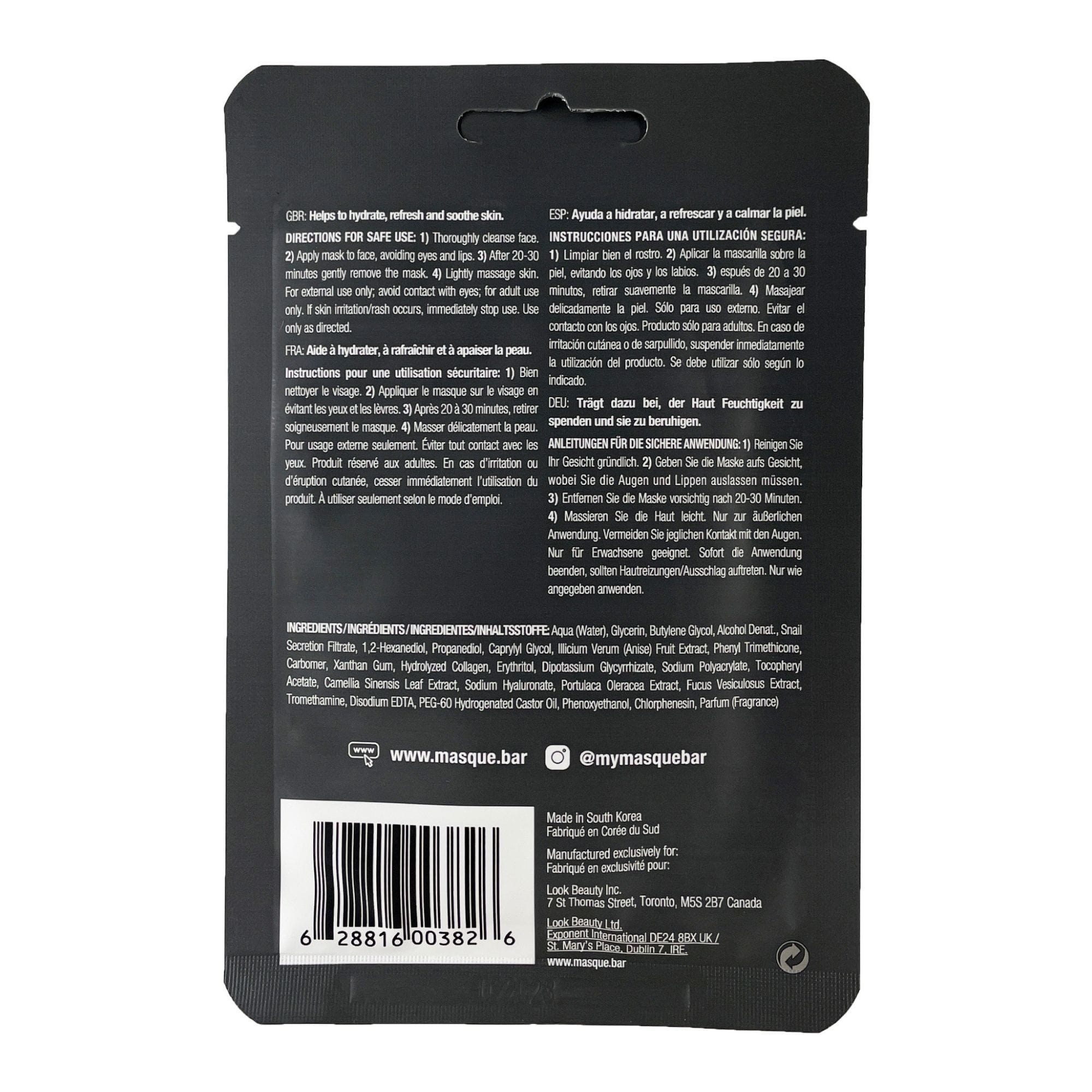 Water (Aqua), Glycerin, Butylene Glycol, Alcohol Denat., Snail Secretion Filtrate, 1,2-Hexanediol, Propanediol, Caprylyl Glycol, Illicium Verum (Anise) Fruit Extract, Phenyl Trimethicone, Carbomer, Xanthan Gum, Hydrolyzed Collagen, Erythritol, Dipotassium Glycyrrhizate, Sodium Polyacrylate, Tocopheryl Acetate, Camellia Sinensis Leaf Extract, Sodium Hyaluronate, Portulaca Oleracea Extract, Fucus Vesiculosus Extract, Tromethamine, Disodium EDTA, PEG-60 Hydrogenated Castor Oil, Phenoxyethanol, Chlorphenesin, Fragrance (Parfum)